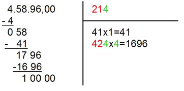 On soustrait 41 de 58 et on abaisse la tranche suivante. On obtient 1796.